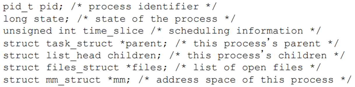 Linux의 task_struct (C의 구조체로 표현)