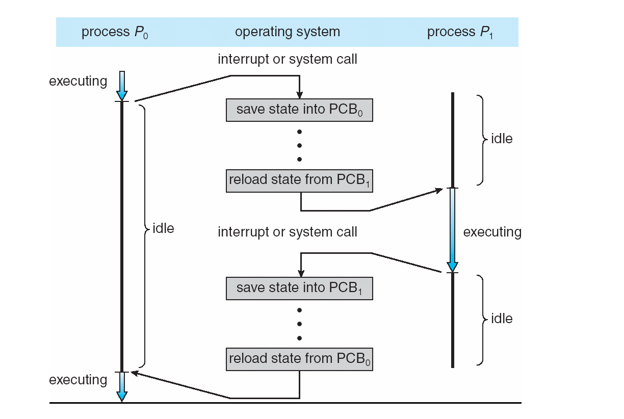 CPU가 다른 프로세스로 전환될 때, 이전 프로세스의 상태를 저장하고 새 프로세스의 상태를 로드하는 작업